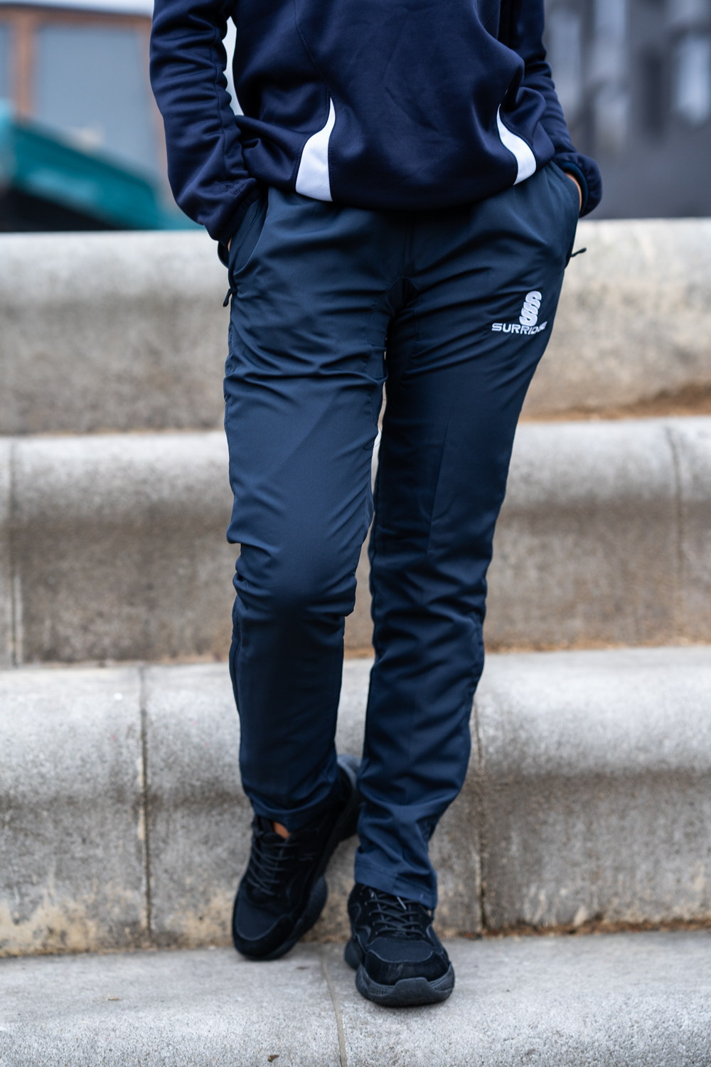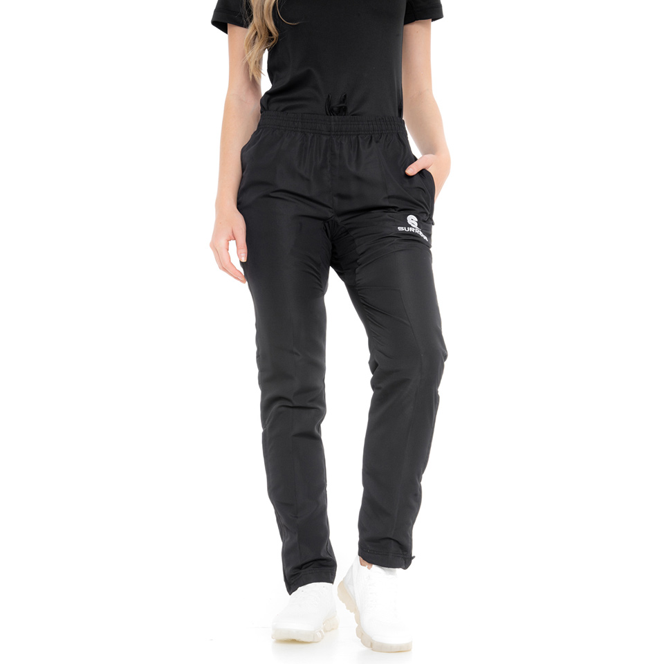 The Blade Ripstop Pants are made with a matte texture Ripstop-Polyester blend, with mesh upper lining and Nylon Tafeta lower lining. The Lycra gusset adds flexibility, comfort and extra strength. It comes with an inner waist draw cord, zipped pockets and a 12" side seam lower zip at hem. They are designed for a modern slimmer leg fit from knee downwards, with a slightly tapered leg. To finish, an embroidered SS Surridge logo is located on the left thigh.